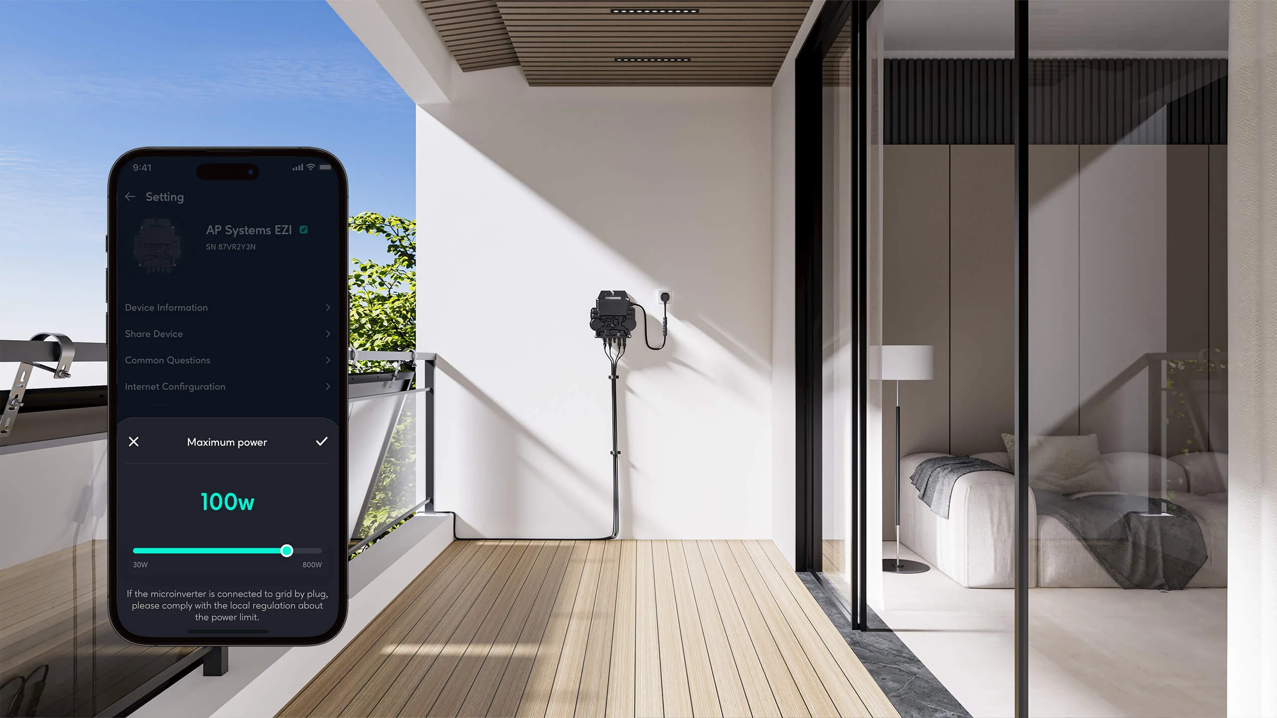 Conçu pour une installation facile et rapide, l’EZ1-M est livré avec un câble d’extension AC de 5 mètres, pour une intégration pratique à votre système. Notez que le réglage via l’application Zendure est uniquement disponible si le produit est acheté via un canal autorisé Zendure.