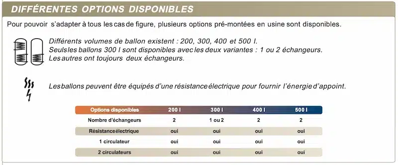Ecopression propose diverses configurations, avec des options telles que le nombre d’échangeurs et la résistance électrique, permettant une adaptation précise à l’environnement de chaque utilisateur. Les ballons de 300L offrent une flexibilité supplémentaire avec des variantes à 1 ou 2 échangeurs.