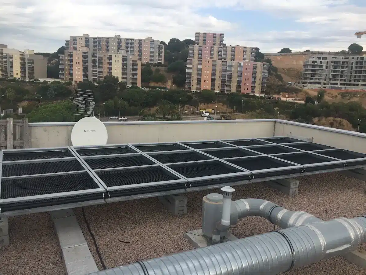 Solar Pump® se distingue également par son faible impact visuel et sonore. Les capteurs et la chaufferie sont discrets et n’affectent pas l’esthétique de l’architecture environnante. Ils sont conçus pour résister aux intempéries (pluie, vent, UV) tout en restant invisibles depuis l’extérieur, ce qui rend le système particulièrement adapté aux environnements urbains et résidentiels.